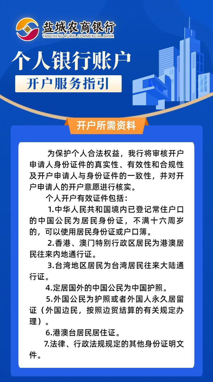 盐城农商银行个人银行账户开户服务指引