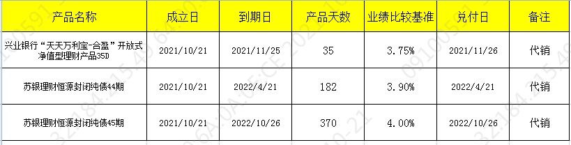 兴业银行“天天万利宝-合盈”开放式净值型理财产品35D 苏银理财恒源封闭纯债44期 苏银理财恒源封闭纯债45期 代销发行公告