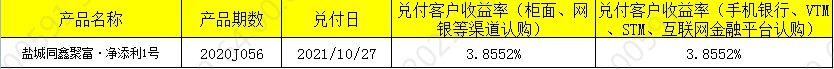 盐城同鑫聚富·净添利1号 2020J056 兑付公告