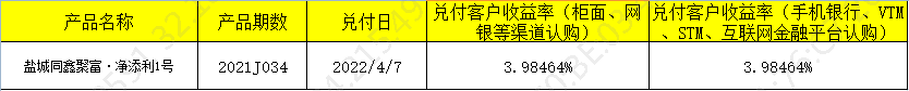 盐城同鑫聚富·净添利1号2021J034 兑付公告