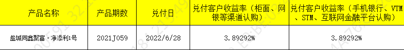 盐城同鑫聚富·净添利1号 2021J059 兑付公告